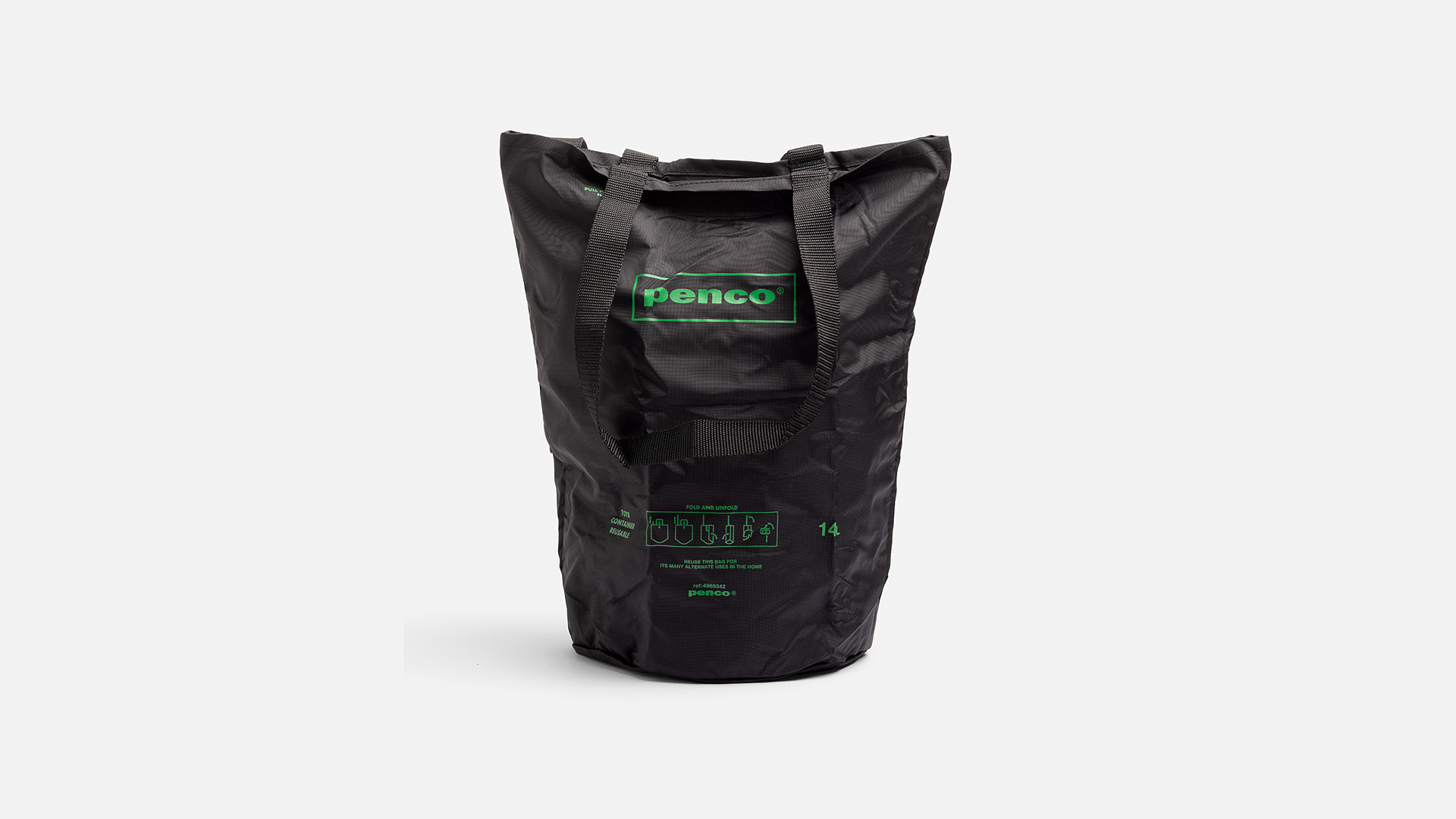 The Penco Bucket Tote Bag is a modern reinterpretation of the classic bucket bag, inspired by mid-20th century Japanese industrial aesthetics. Made from durable medium-thickness nylon, it is lightweight yet can easily carry heavy items, making it ideal for everyday use. Its tall shape with a round bottom provides ample space and keeps long or bulky items stable, while the top opening features a Velcro closure to protect the contents. A convenient internal pen holder keeps a pen always within reach. Dimensions: open 22x44x20 cm, folded 14x8x8 cm. Handle height: 25cm. Nylon. Comfortable and practical, perfect to carry everywhere, also as a useful secondary bag. 14 cm x 8 cm x 8 cm
